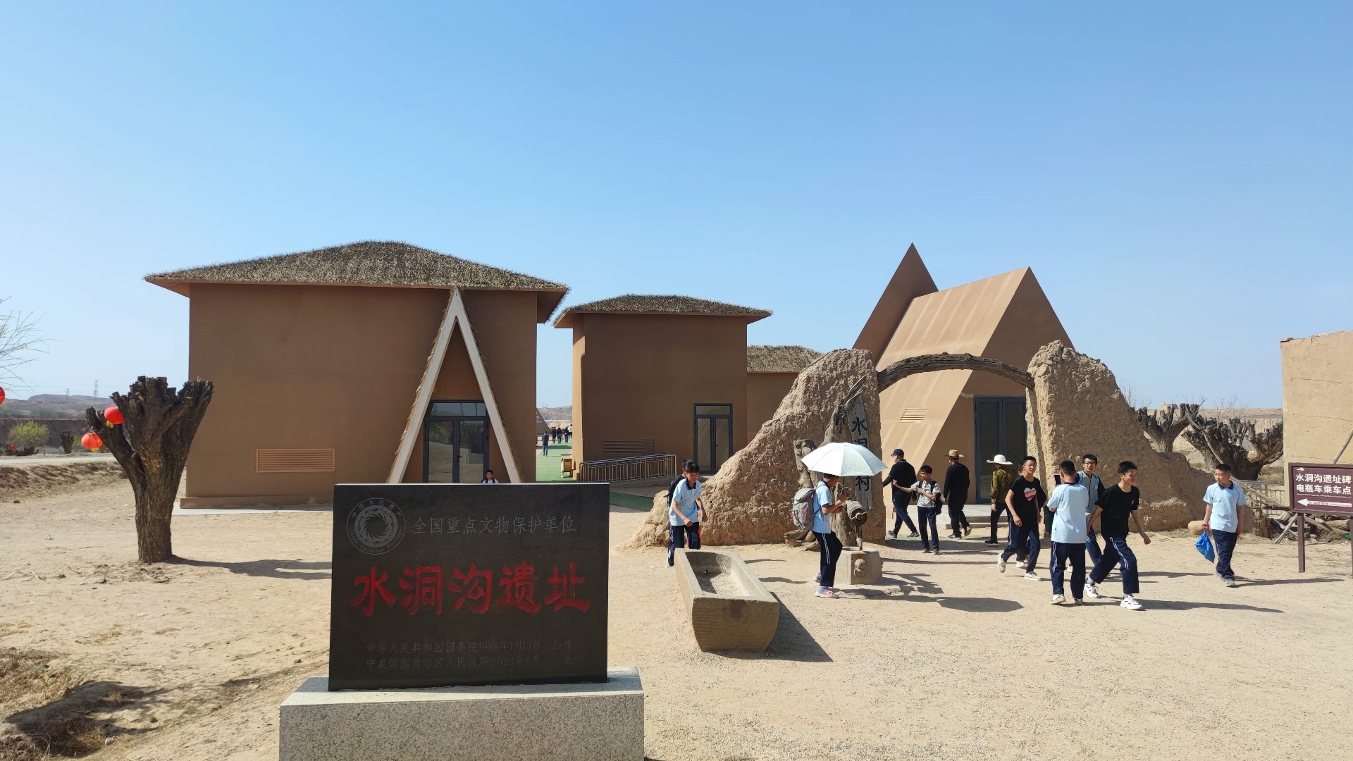 第一天我們抵達寧夏后,我們首先參觀了連世界考古學家都非常向往的四萬年前的水洞溝,跟隨講解員步伐聆聽三萬年前人類在此繁衍生息的故事,然后抵達碼頭后乘坐電瓶船,游蕩在湖水之間,上岸后乘坐駱駝和騾子車,前往機關重重的藏兵洞。