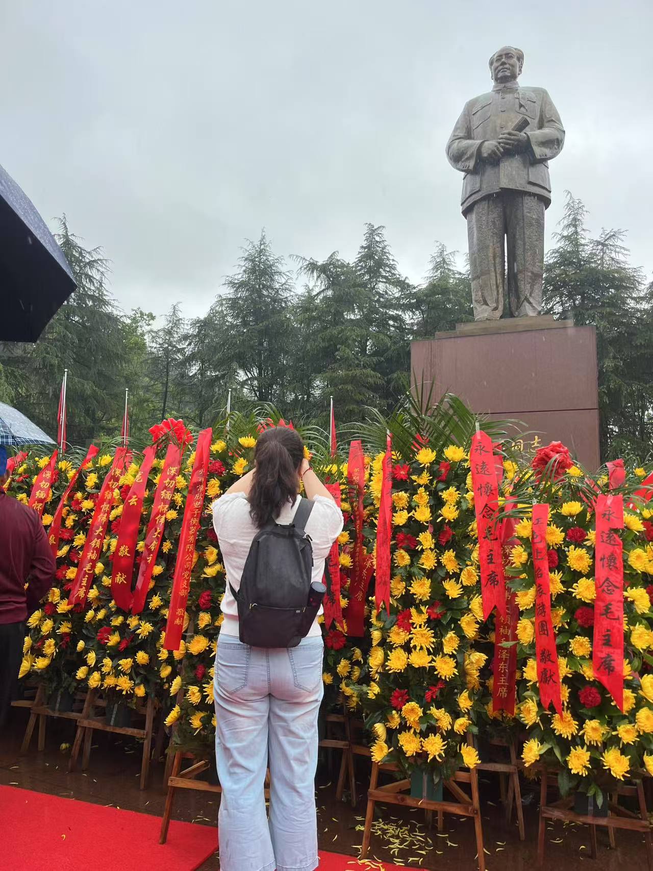 次日,盡管大雨傾盆,卻澆不滅黨員們的熱情。在韶山毛澤東銅像廣場(chǎng),全體黨員莊嚴(yán)肅立,向毛澤東銅像敬獻(xiàn)花籃,深深三鞠躬,表達(dá)對(duì)偉人的無限崇敬與追思。隨后,大家參觀了毛澤東故居。這座始建于1878年的土木結(jié)構(gòu)農(nóng)舍,是毛澤東誕生和度過少年時(shí)光的地方 ,屋內(nèi)陳列的舊物,無聲訴說著偉人的成長(zhǎng)經(jīng)歷,激勵(lì)著黨員們不忘初心、艱苦奮斗。滴水洞曾是毛澤東回鄉(xiāng)居住之所,這里靜謐清幽,黨員們?cè)诖烁惺軅ト说募覈?guó)情懷。